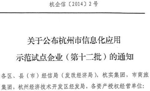 2014年7月4日,西尼電梯(杭州)有限公司被市工業企業信息化推進工作領導小組認定為杭州市第十二批工業企業信息化應用示范企業。 制造業信息化是制造業發展的大趨勢。公司以促進信息化與工業化融合的