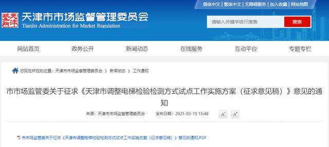 近幾年“奪命電梯”事件頻繁發生 老舊電梯問題 一直是人們的心頭大患 電梯安全 如何才能做到萬無一失? 日前 《天津市調整電梯檢驗檢測方式試點工作實施方案》 在天津市市場監督管理委員會網站 征求意見 征