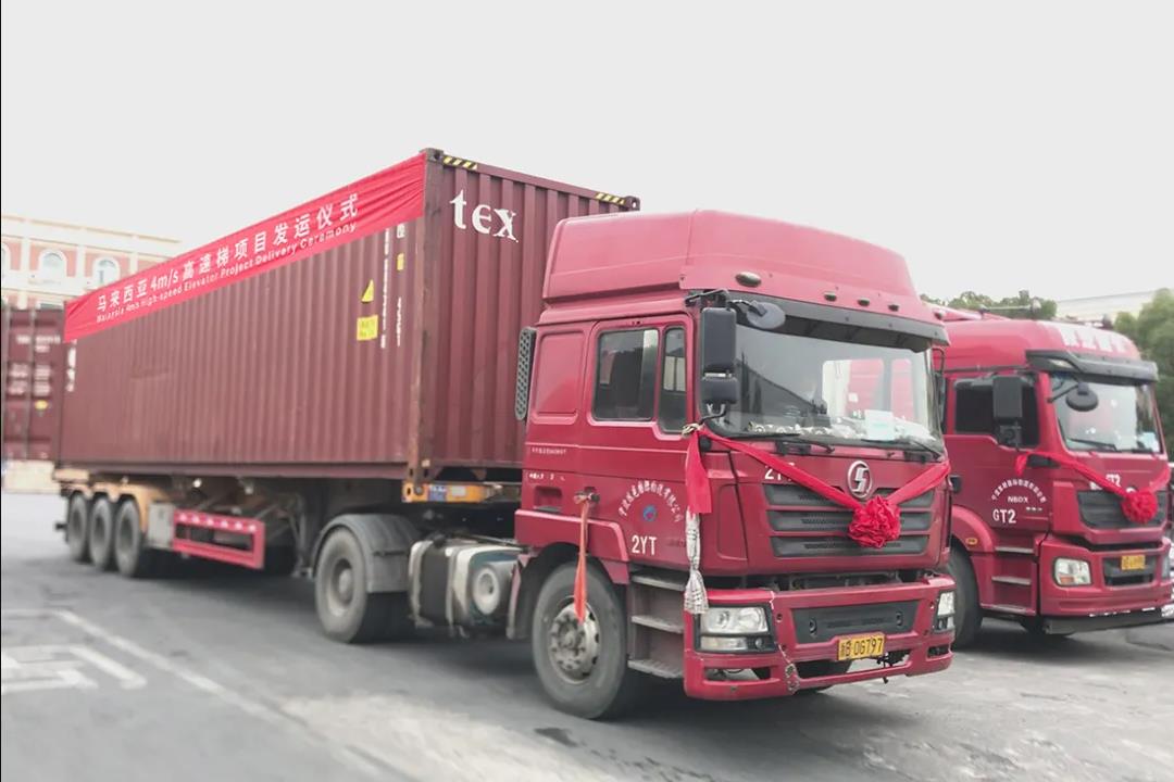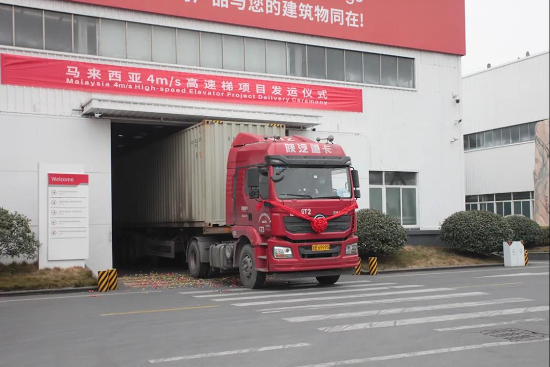 時光不負奮斗者,長風萬里啟新程。1月8日,出口馬來西亞16臺4M/S高速梯順利發(fā)運并在西尼南陽廠區(qū)舉行了熱烈簡短的發(fā)運儀式。